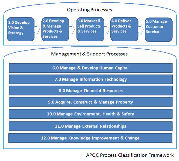 - Supply Chain Management through monitoring the classification of the APQC framework.
